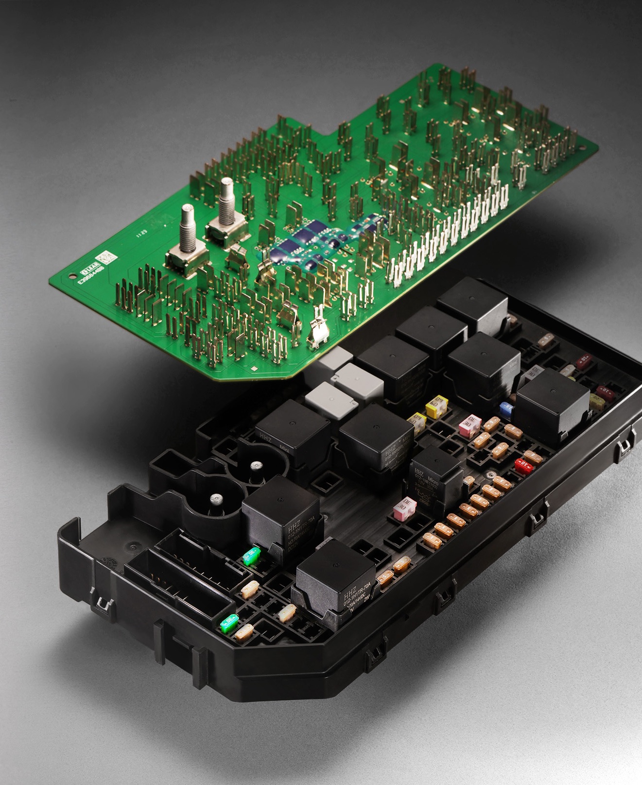 Hulane 的印刷电路板型接线盒是高效利用空间的理想解决方案,能减少整体车辆线束的复杂度。我们的接线盒高度灵活且可编程,便于整合高低电流电路、现代电子元件如传感器与微控制器,以及 CAN 总线,以提升系统性能。这些接线盒采用表面贴装技术(SMT)及插拔元件设计,实现快速重新布线与简易元件更换。